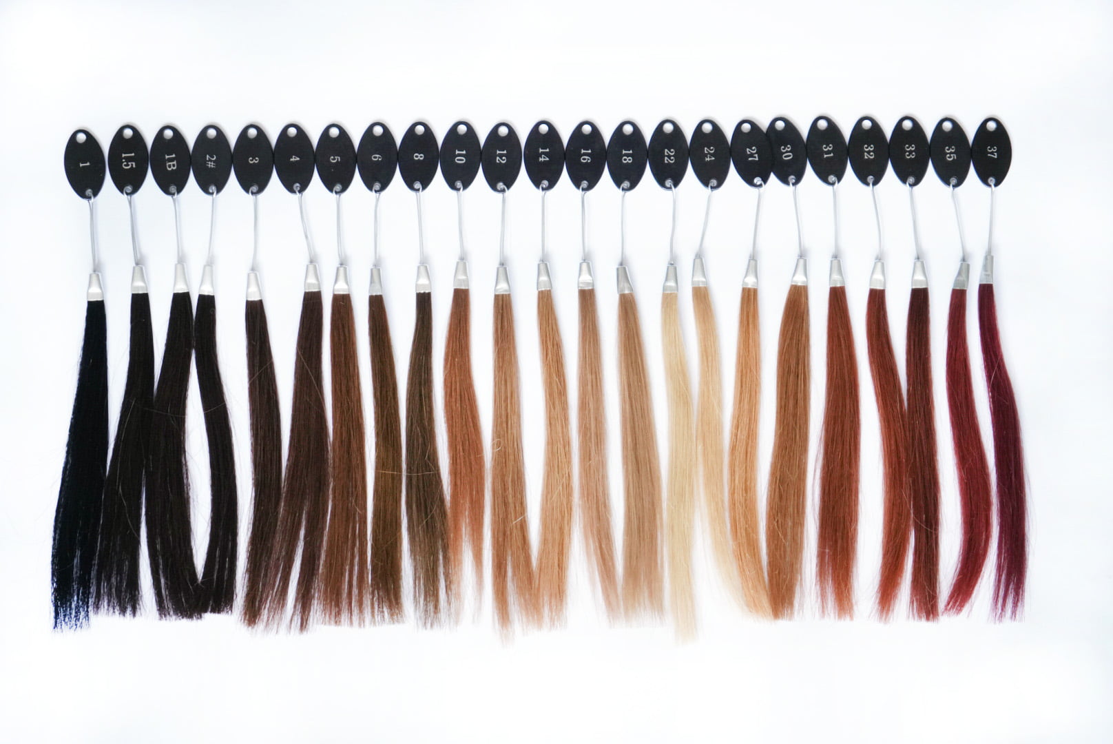 - Bleaching and dyeing come next. We use our latest organic bleach to lighten the hair to nearly white and then customize the color according to the customer’s order. We can dye in approximately 41 different colors, not including ombre and piano colors.